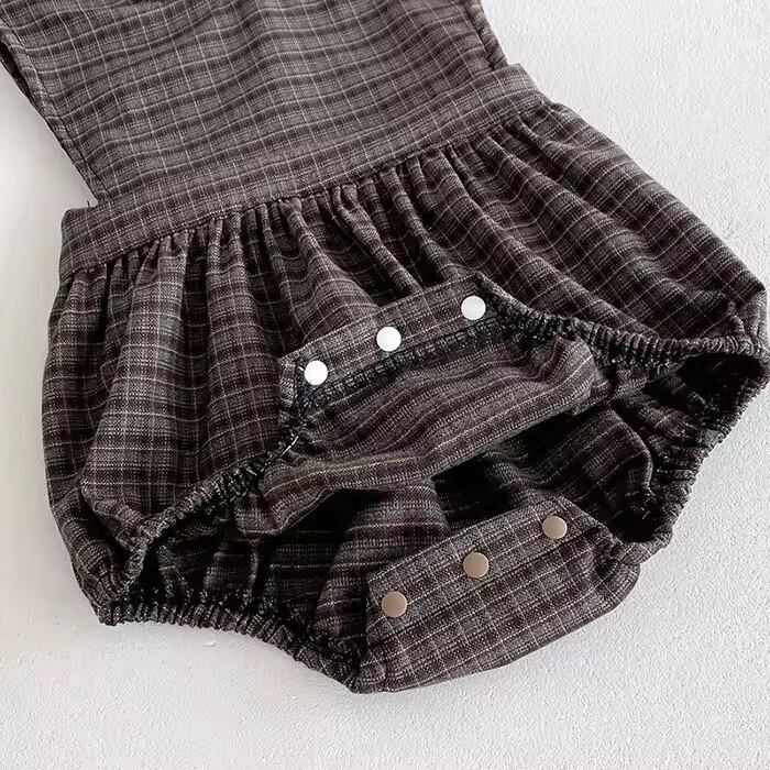 ふんわりギャザーのチェック柄ブルマロンパース/ジャンパースカート〖70-100cm〗