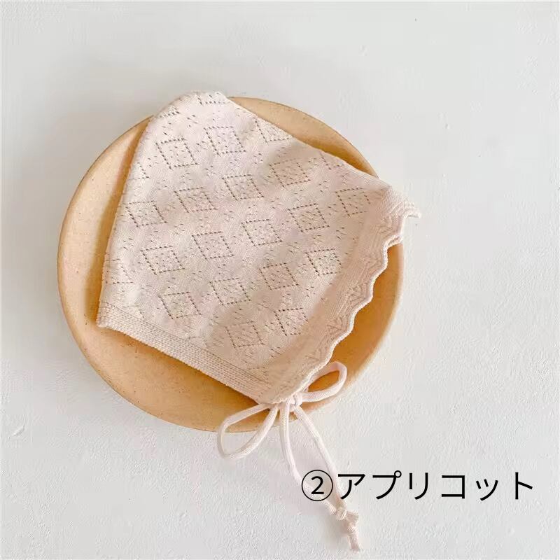 お顔周りを優しく包み込むスカラップデザインが、赤ちゃんの可愛らしさをより一層引き立ててくれます。