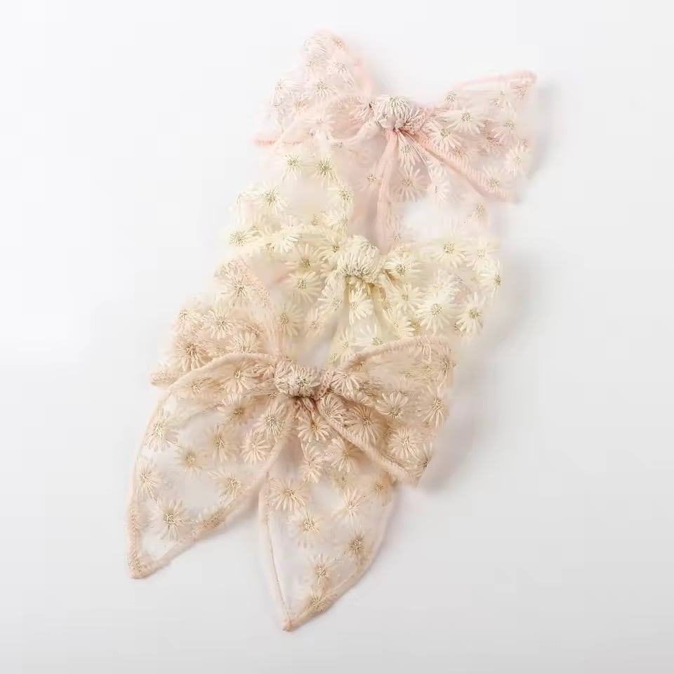 透け感が美しいシアーチュールに可憐なデイジーの刺繍を贅沢に施したヘアクリップの豪華3点セットです。