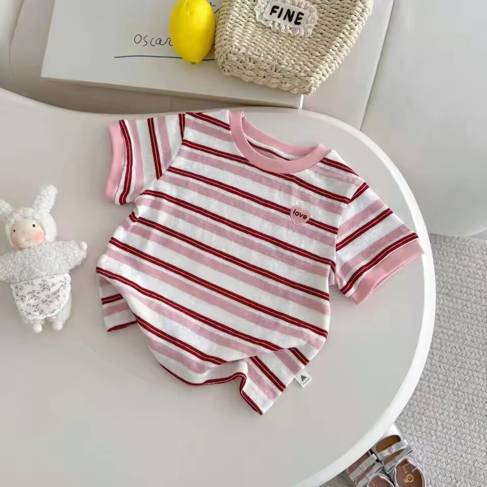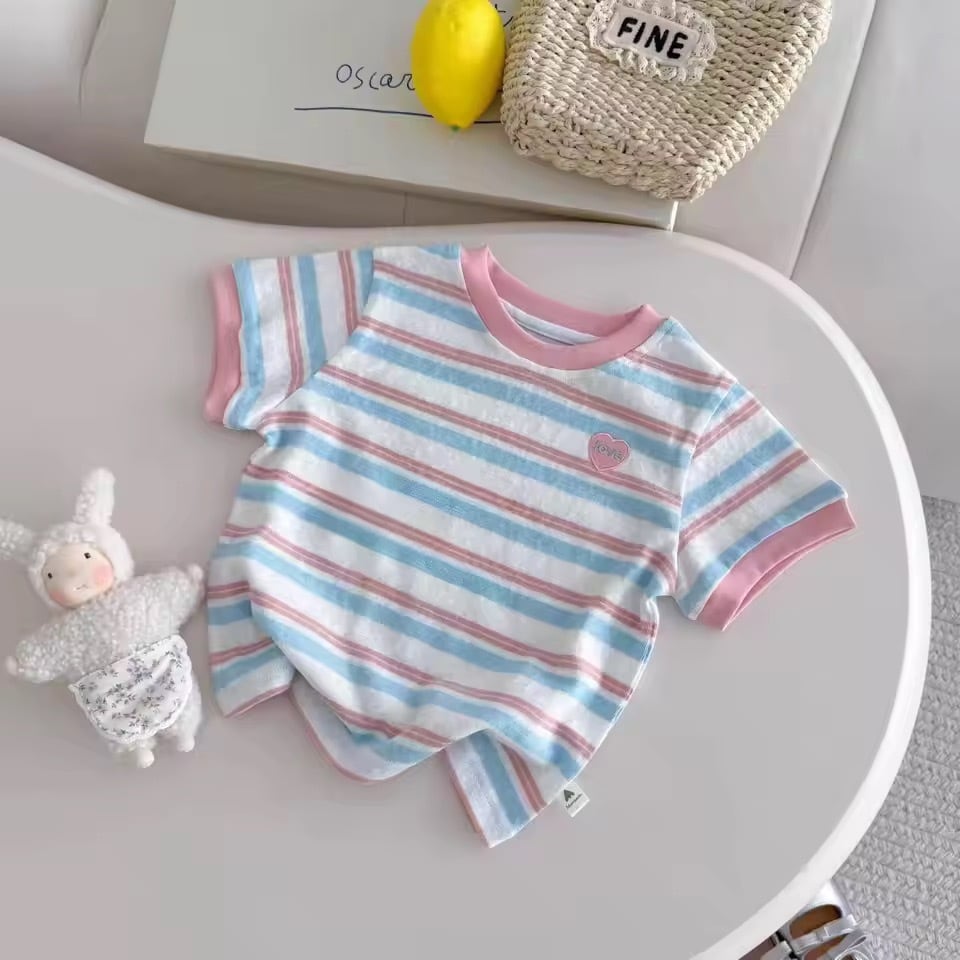 ハートワッペン ボーダーTシャツ〖90-140cm〗