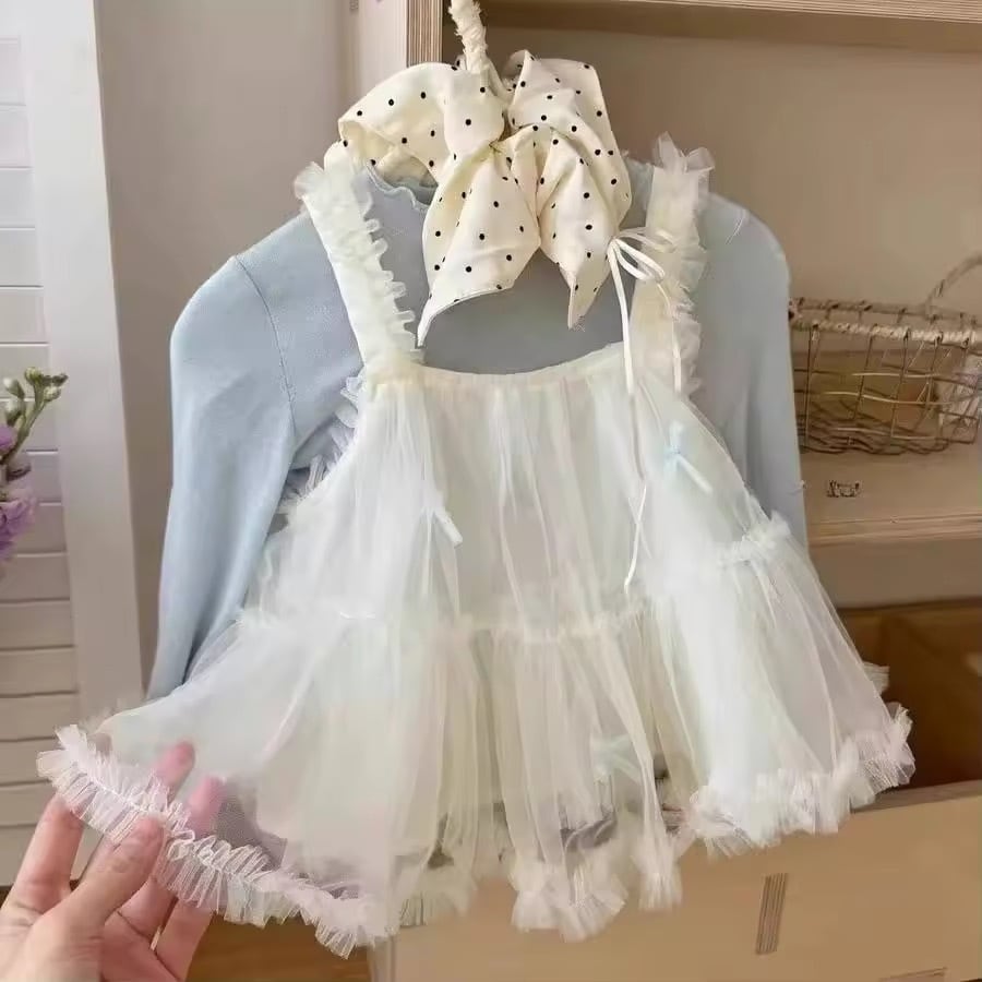 肩のフリルや裾のティアードデザインが、動くたびにふわふわと揺れてお子様の可愛らしさを引き立てます。