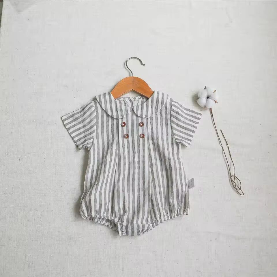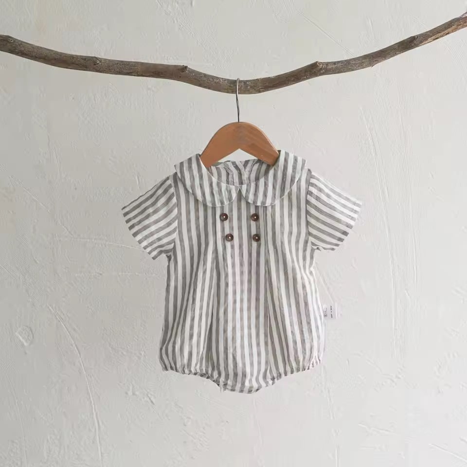 丸襟ダブルボタンのコットンロンパース