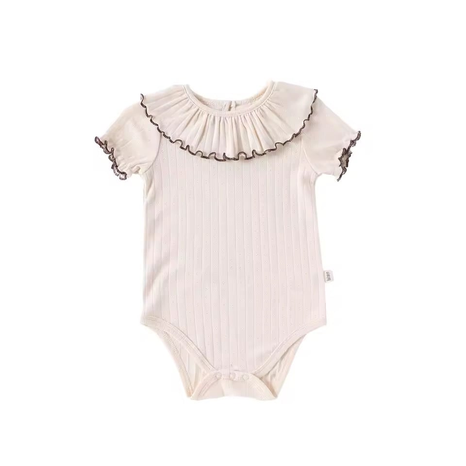 スカラップフリル襟 リブベビーロンパース〖60-80cm〗